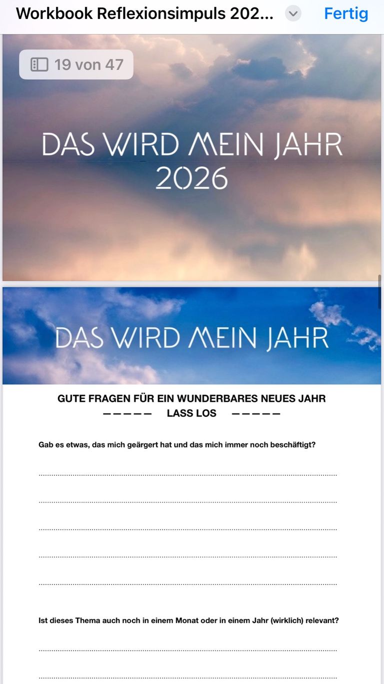 Es umfasst 20 Fragen für deine individuelle Jahresrückschau sowie 40 Fragen für deine persönliche Ausrichtung für das neue Jahr.